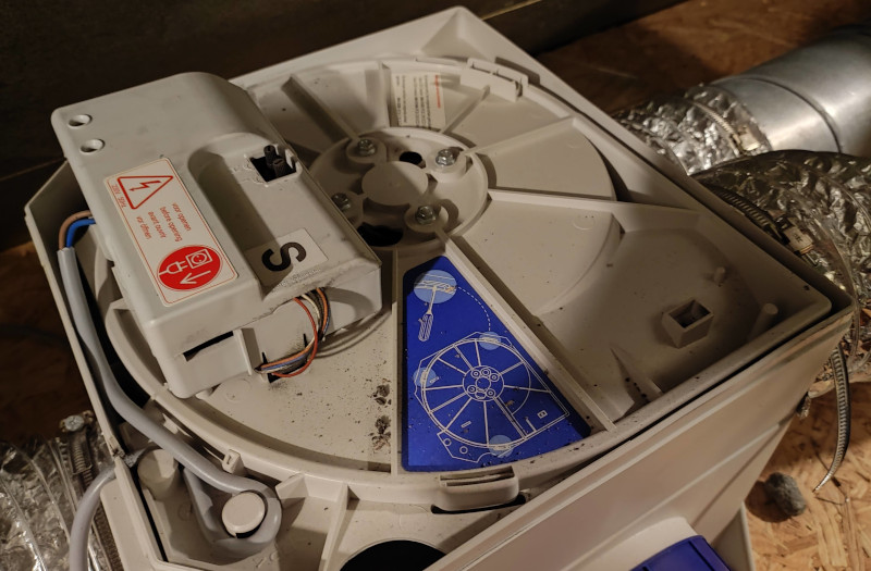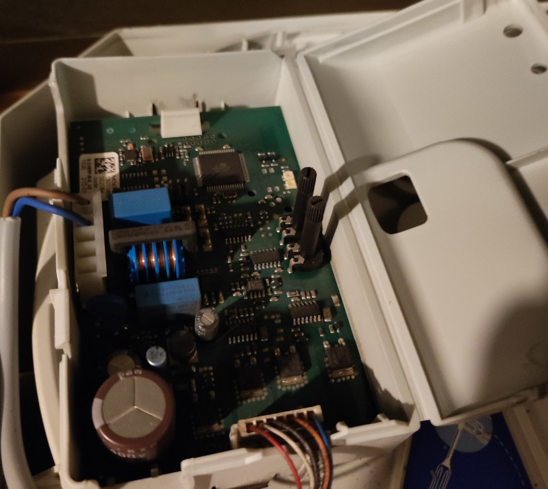 Eerste stap is blauwe kap van de ventilator unit halen. Uiteraard eerst even de stekker eruit, veiligheid boven alles. De deksel is 'geklikt', schroeven is niet nodig. Er zijn aan de buitenkant twee uitsteeksels waar je hem met een grote schroevendraaier kan loswippen. De aansturing zit weer in een apart grijs doosje. Ook de deksel hiervan is niet geschroefd, ook deze kan je met een kleine schroevendraaier er zo afhalen. Daarmee wordt de print zichtbaar met de connector waarop je de add-on print kan vastklikken. Grootste gedoe is het afstandshoudertje, deze kreeg ik alleen vast door ook even de print los te maken. Dan kan je onder de print duwen terwijl je de afstandshouder vanaf boven erin drukt. Misschien is dit niet altijd nodig en was alleen in mijn geval het gat wat klein, bij alleen van boven drukken vond ik de print teveel 'kromtrekken'. En that's it. Behalve natuurlijk als je ook de vochtsensor hebt aangeschaft.