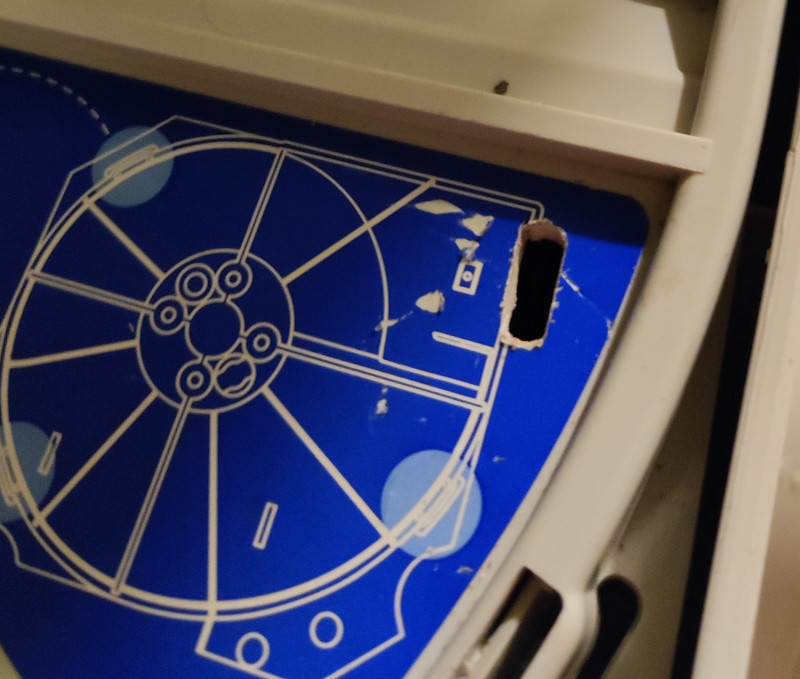 Er zijn allerlei mogelijkheden het plaatsen van de vochtsensor. Sommigen maken één de draaddoorvoer van de printbox naar de ventilator wat breder, sommigen gebruiken de plek van de (ongebruikte) CO2 sensor en sommigen maken een extra sleuf. Ik heb voor die laatste gekozen, een beetje op de plek voor de CO2 sensor. Ik denk niet dat ik die daar ooit ga plaatsen maar je weet nooit wat je verzint. Je wilt natuurlijk wel weten waar je uitkomt dus is het handig om de 'tussenplaat' in de ventilator ook los te maken. Ook deze is niet geschroefd, er zijn vier nisjes/inkepingen waar je met een brede schroevendraaier iets kan losklikken. Ze zitten niet helemaal in de hoeken, maar ze zijn zo te vinden. Er zit een sticker die de posities aangeeft inclusief de manier om ze los te klikken. Hiermee komt de plaat met ventilator zelf los en kan je alles goed zien. De sleuf is zo te maken, boor twee gaatjes aan de uiteinden en gebruik een stanleymes om het materiaal tussen de gaatjes weg te snijden. Het plastic is niet zo hard, het ging vrij gemakkelijk. Kies een boortje dat breed genoeg is voor het uitstekende deel van de sensor. Houd rekening dat de chipjes wat uitsteken en dat het kabeltje natuurlijk wel weer op de add-on moet kunnen aansluiten. Positie even controleren en dan de sensor erin lijmen. Laatste stap is dan het kabeltje op de add-on print aansluiten.