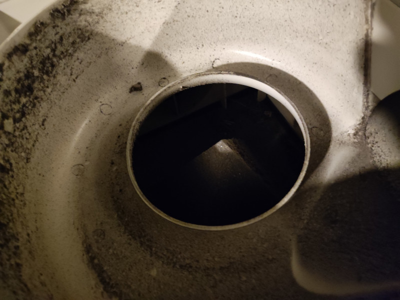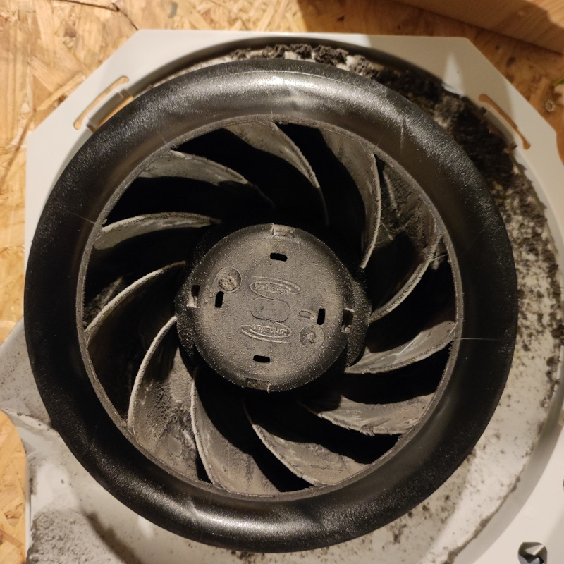 Een bonus als je hem toch open hebt liggen, eigenlijk moet je de box regelmatig schoonmaken. En je hebt hem nu toch open liggen. Gewoon met een stofzuiger waarbij je het 'plakkerige' stof met een (nieuwe) verfkwast losveegt. Uiteraard de ventilatorbladen zelf heel voorzichtig. Let vooral op de loodjes die erop zitten om hem uit te balanceren. Die wil je natuurlijk zo laten als ze waren.